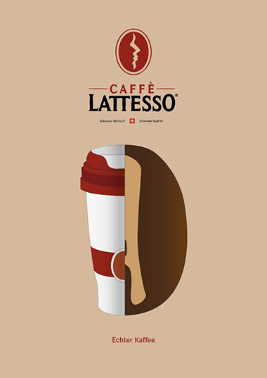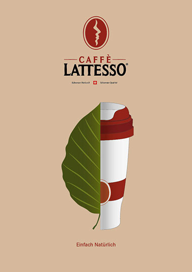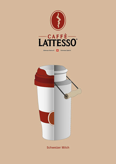 Das erarbeiten einer Plakatkampagne für den Kaffee Latesso, mit drei verschiedenen Motiven. Auf den Plakaten soll ersichtlich sein, dass sie schweizer Milch und echten Kaffee verwenden und dass das Ganze einfach natürlich ist. Um genau diese Botschaften zu übermitteln, habe ich mit den halbiereten Illustrationen gearbeitet.